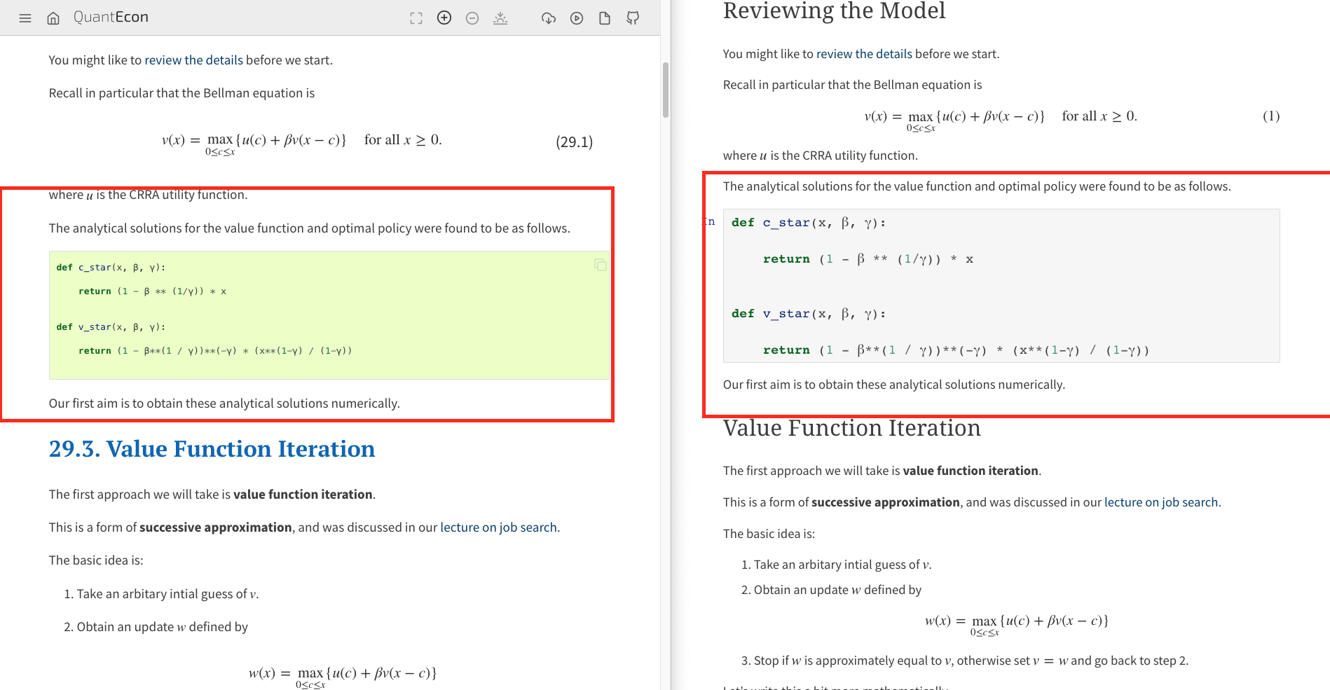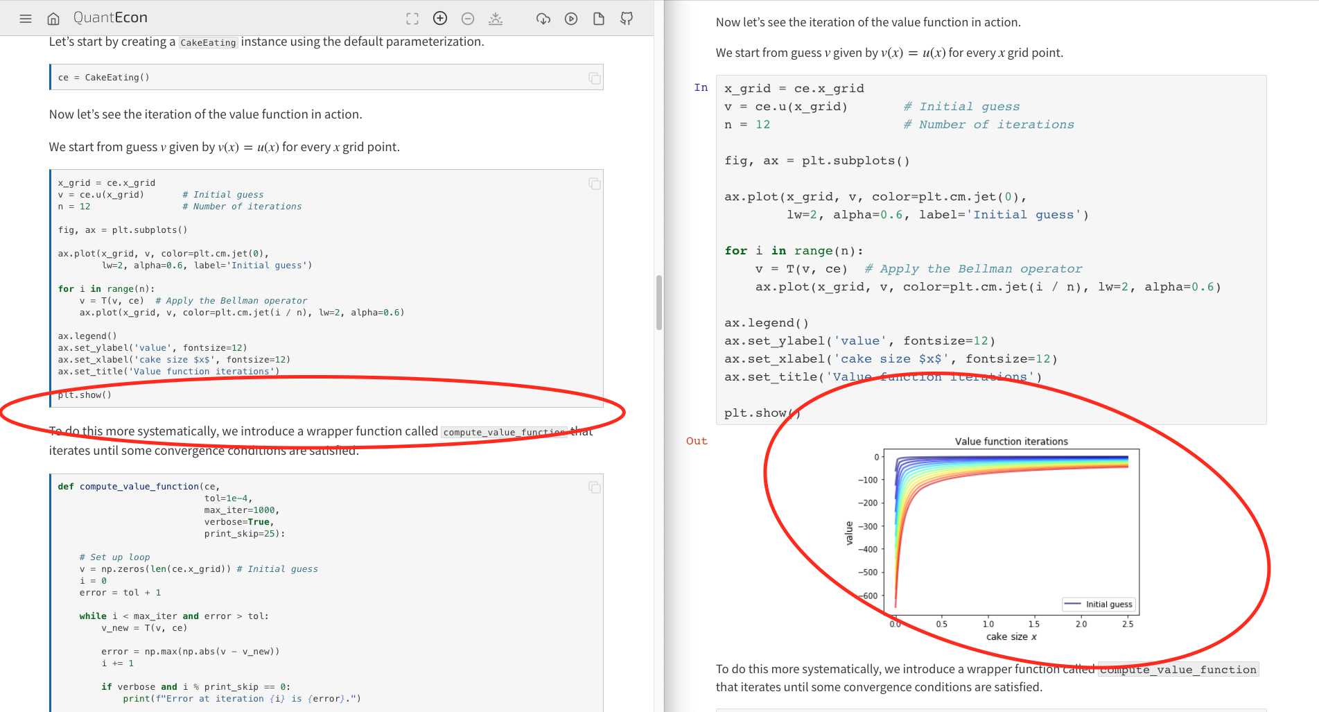 For example, in lecture cake_eating_numerical, almost all code cells have this issue and I label them with red lines.