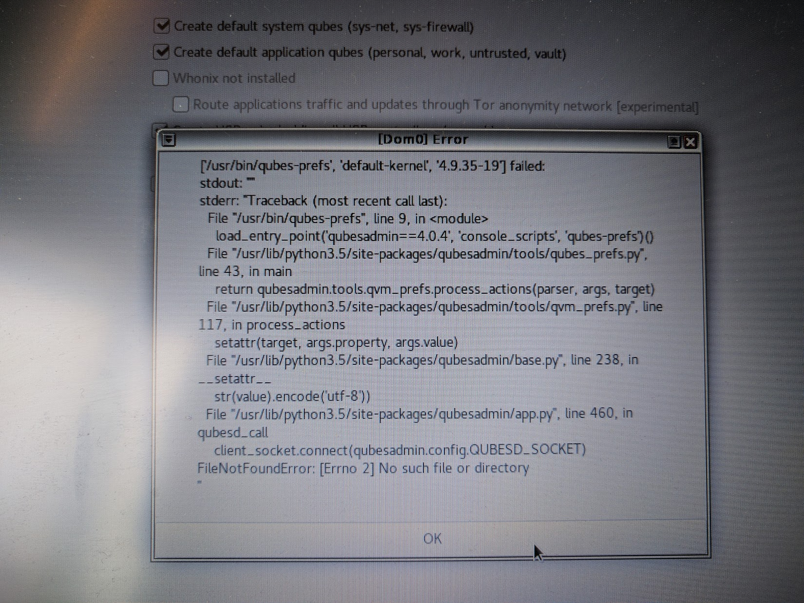 Sign upPost install step fails running /usr/bin/qubes-prefs default-kernel #3028