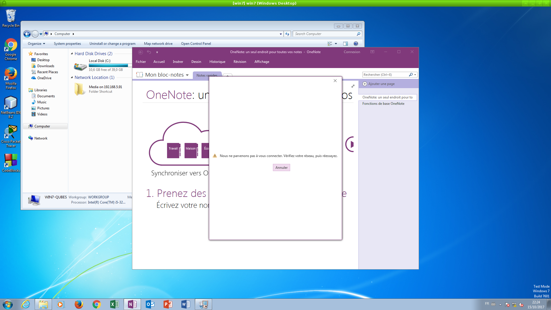 because of the lack of windows to recognize the connectivity and that the system is connected to internet, it seems that the connection module of office once installed, can't recognized that windows is connected and so it cannot connect me to my account to retrieve my notes on onenote for example.
