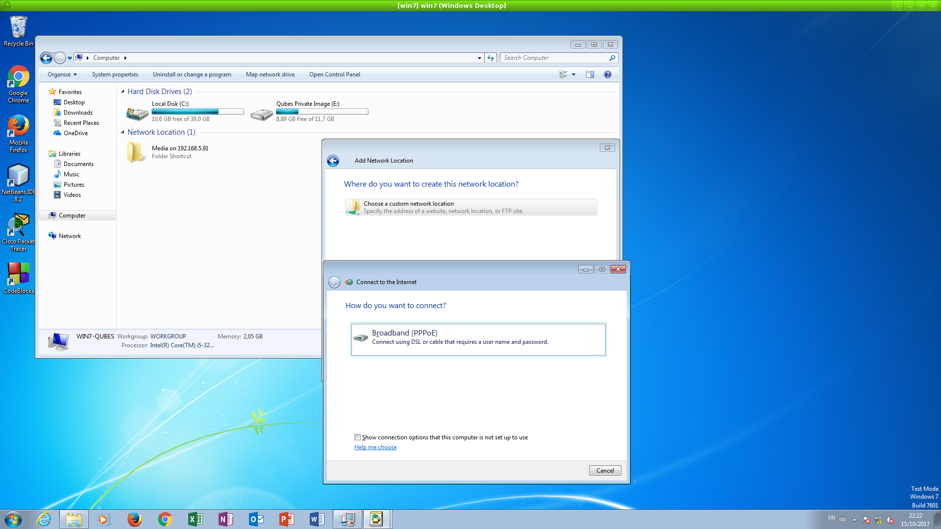 Because of the known issue about the network. I can't link my windows hvm to network share since it will propose to me to connect to internet through dial up or broadband.