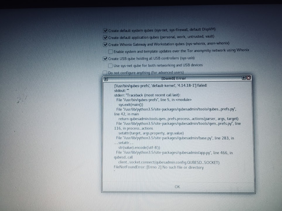 Sign upQubes4.0-rc5 final installation step fails - no qvms created #3753
