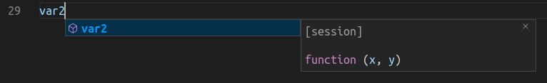 strin documentation. The latest languageserver already supports workspace completion (global variables in code), scope completion (local variables in scope). This PR adds session completion as a new kind of completion.[], mainly for subsetting and extracting using"col", or accessing elements with dynamic scoping in brackets (usage ofdata.table).(If you have)Screenshot