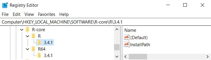 Full key is like Computer\HKEY_LOCAL_MACHINE\SOFTWARE\R-core\R\3.4.1