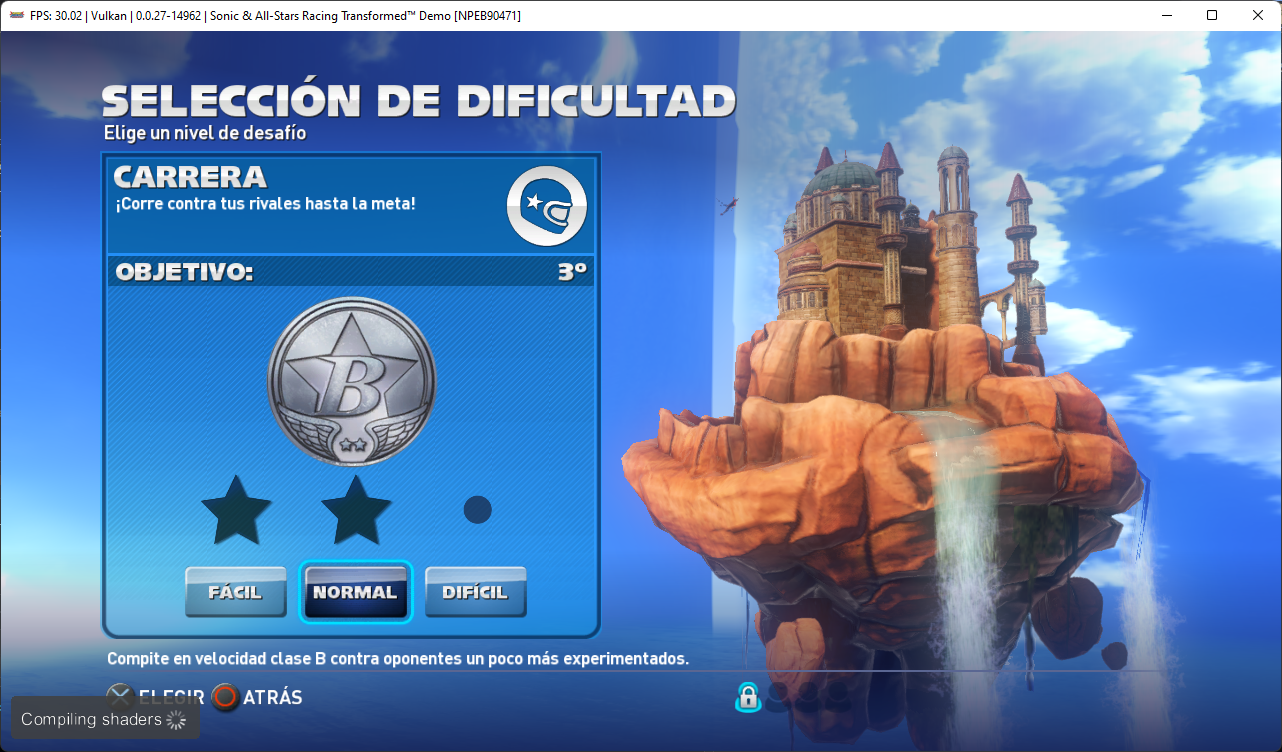 There are broken skyboxes when you're racing or in the main menu. There's no setting (renderer, buffers or CPU blit) to fix this.
