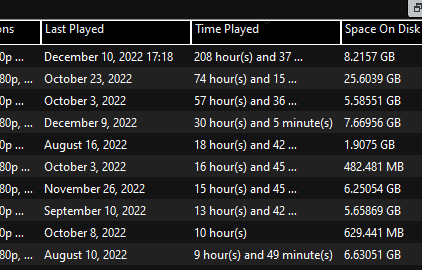 - Add the "Space On Disk" column in the game grid. This also means you can sort games by their size.