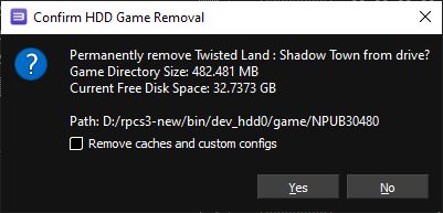 - Report game size and current free space when trying to remove a game to help the user make an informed decision.