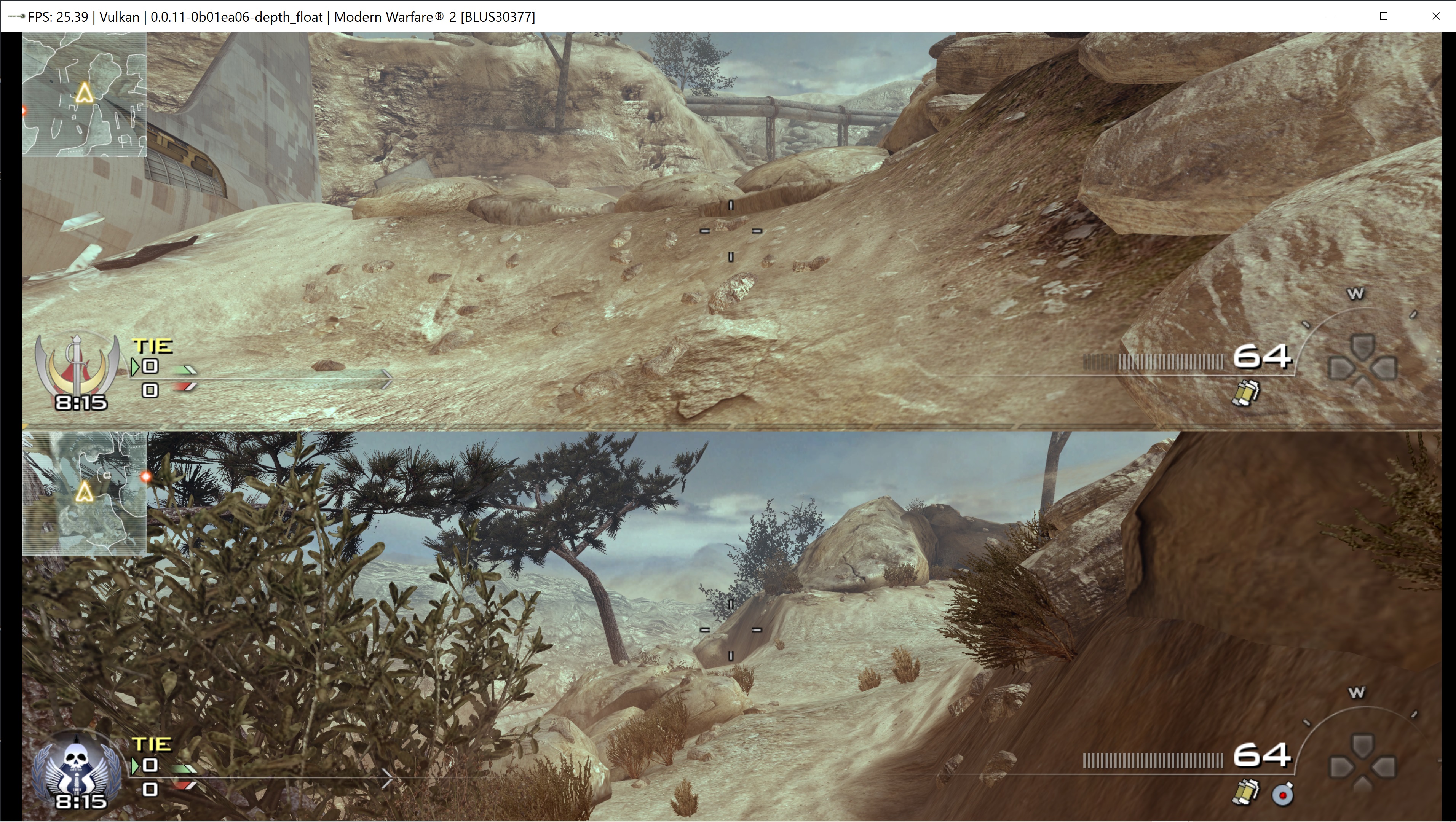 I can confirm this pr fixes the flickering in Goldeneye Reloaded. However it introduces another issue. The screen becomes white, mostly when looking at the sky in the outdoor maps for splitscreen. In addition, Call of Duty Black Ops cannot reach the main menu with this pr, but it can on master. In Call of Duty Modern Warfare 2 your hand and gun is not rendered with this pr, but it shows fine on master |