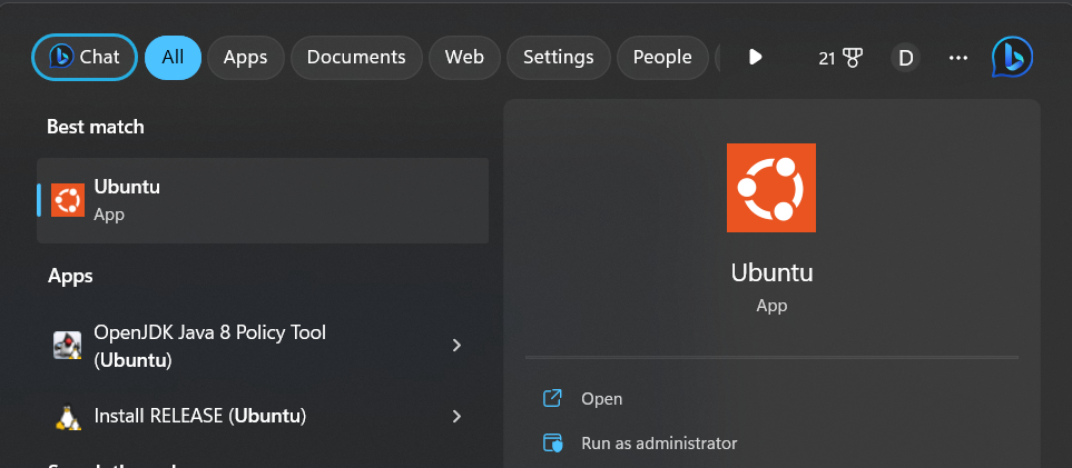 Selanjutnya, jalankan Ubuntu di Windows dengan memilih versi Ubuntu yang terinstal.