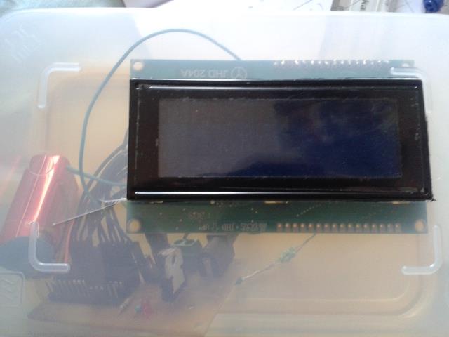 The project is coming along nicely. A lot of the initial wiring work is done. The LCD is interfaced properly with the microcontroller and the Day of Week function is working fine. The clock even has a body now! :D
