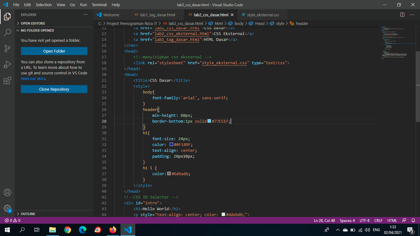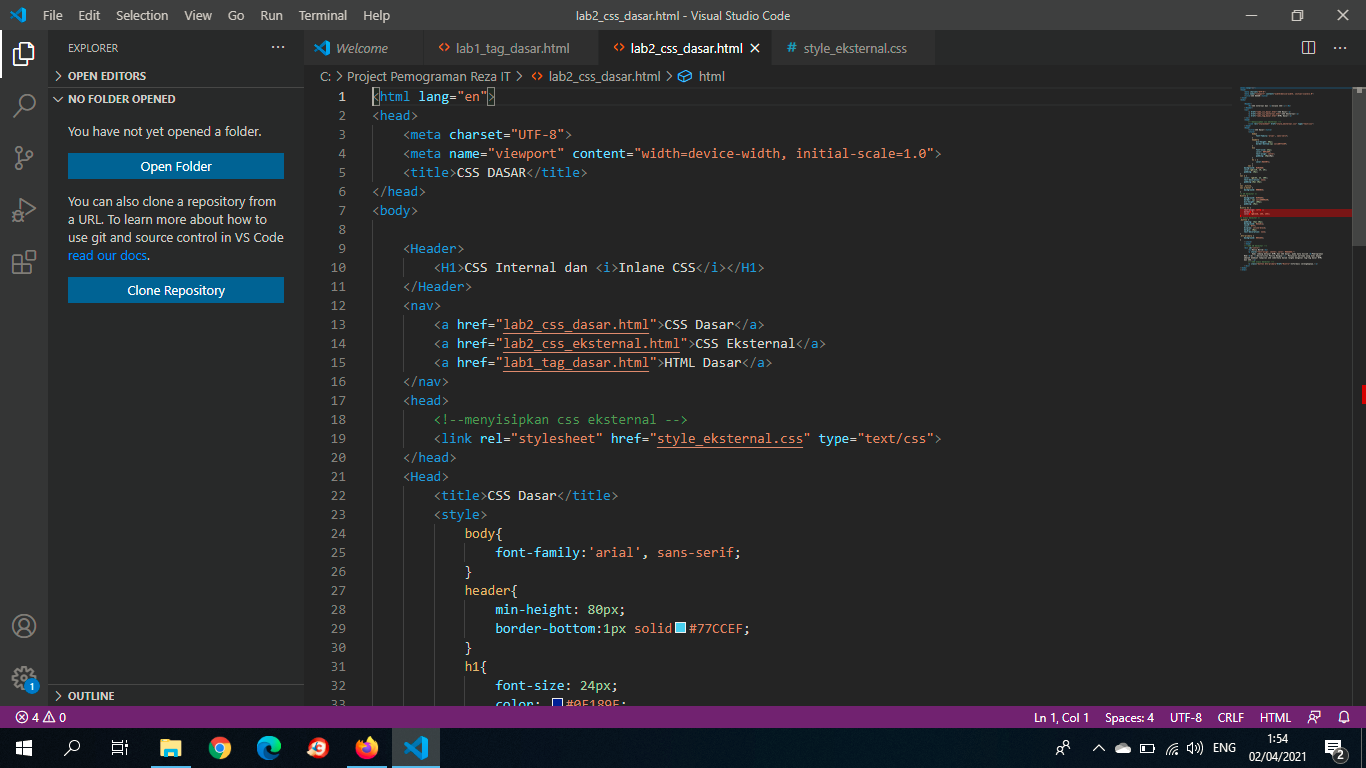 3.Yang tampil duluan adalah CSS internal terlebih dahulu karena 1 file dengan HTML