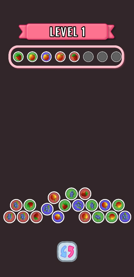 Со стартом уровня на игровое поле сыпятся фигурки с разной формой, цветом и картинкой. Задача игрока состоит в том, чтобы очистить поле от всех фигурок, отправляя их в экшен-бар.
