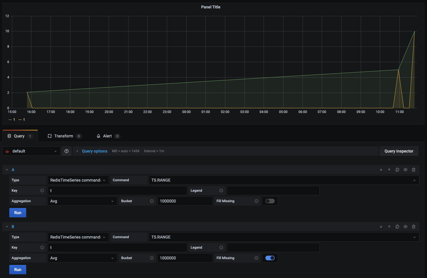 Fill missing intervals implemented in the datasource when Aggregation and Bucket specified for TS.RANGE command.