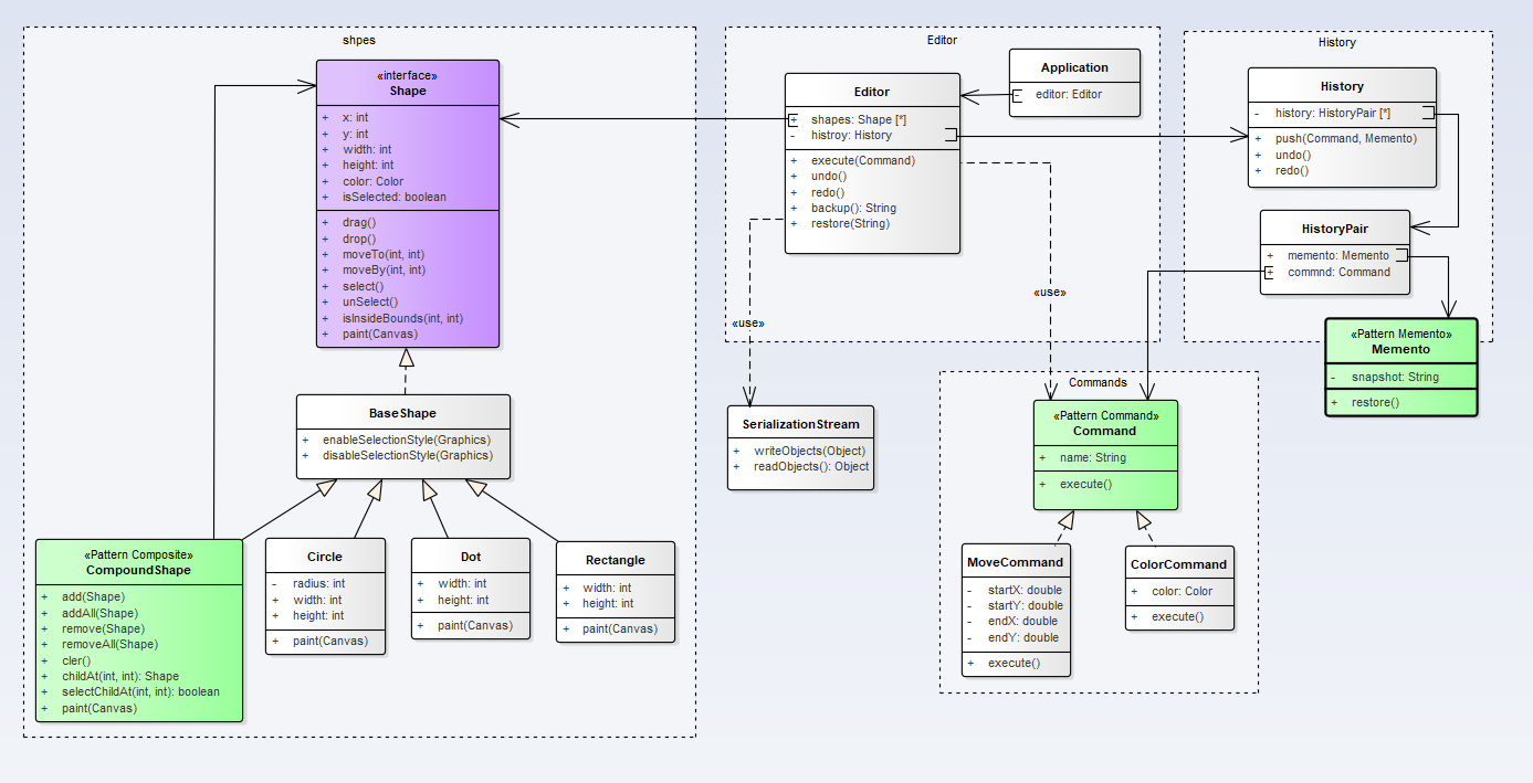 So far, I don't understand the purpose of the HistoryPair class. - Perhaps add a list of undoes to the right of the window.