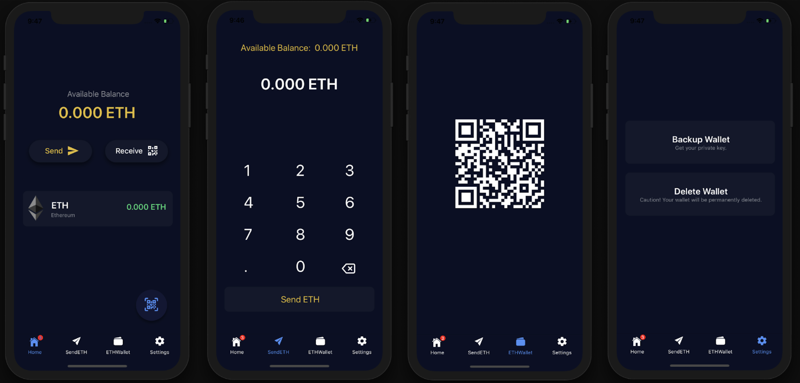 npm run iosfor iOS ornpm run androidfor Android. - Create or import your Ethereum wallet.