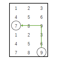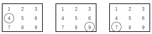 9所在的九宫格随机在上下左右四个方向中选一个延伸,以9到7随机结果向上为例,生成新的延伸九宫格,如下图所示。