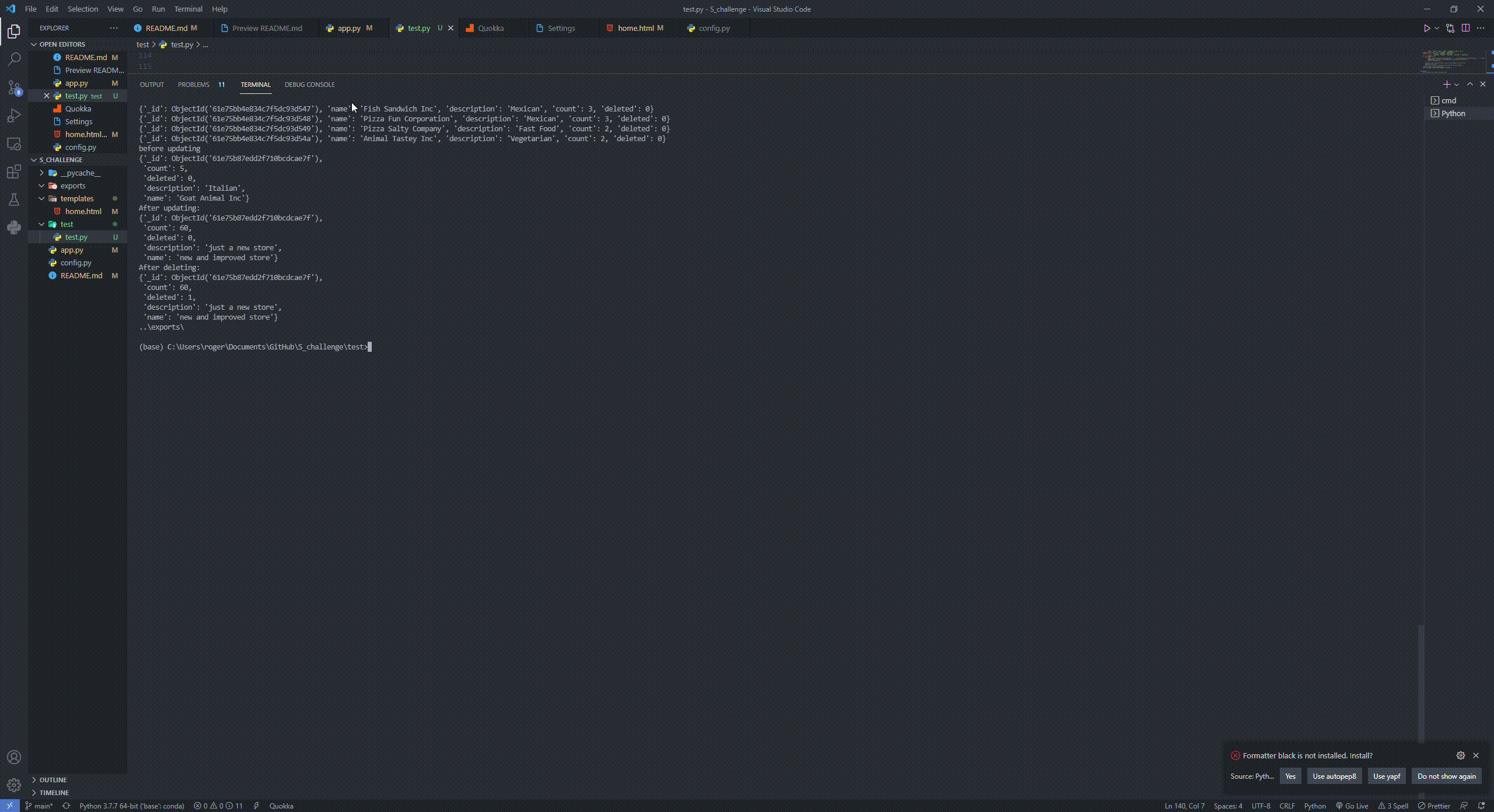 In this challenge, I created a backend database to track inventory for a logistics comapny. The added feature is that you can export it all to a csv or xlsx file.