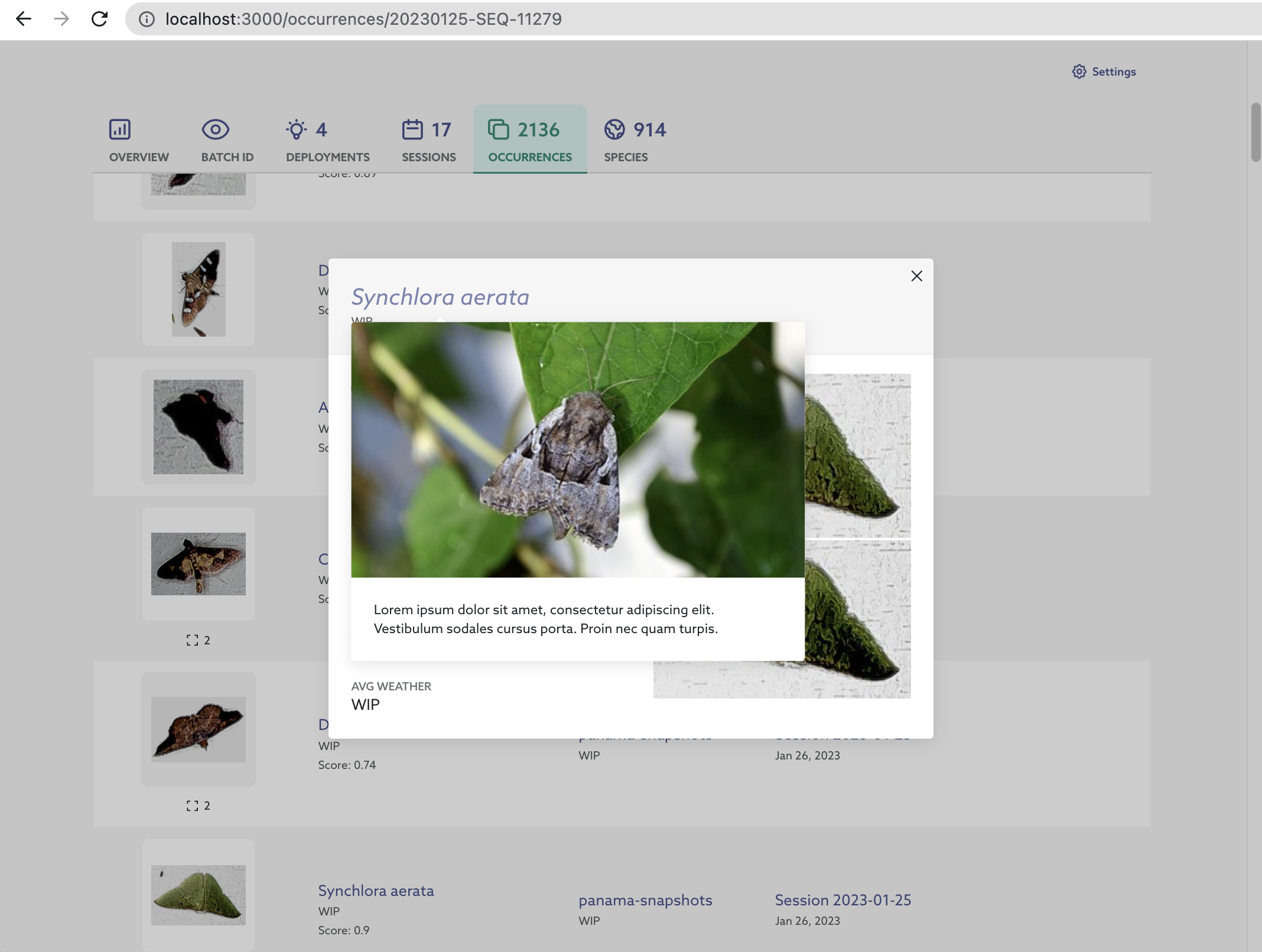 In this PR we add occurrence details. The layout for images is still a bit WIP. We might want to do a nicer grid thing, but since both images size and ratio can be very different, we need more info from API here about image sizes here.