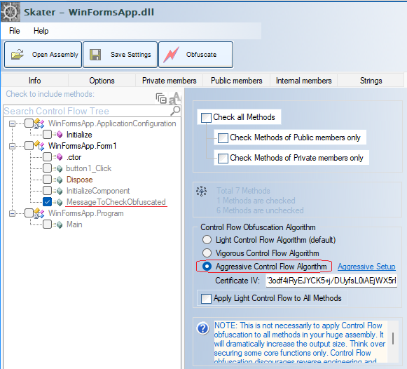 The WinFormsApp .NET application demonstrates how to apply the Skater Aggressive Control Flow obfuscation algorithm.