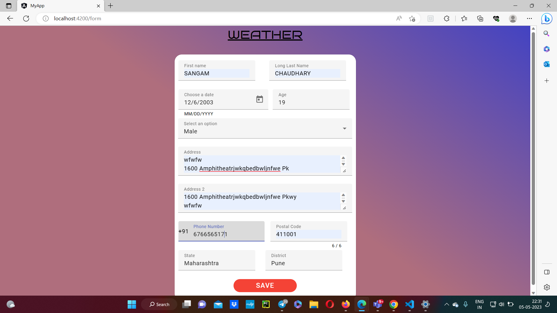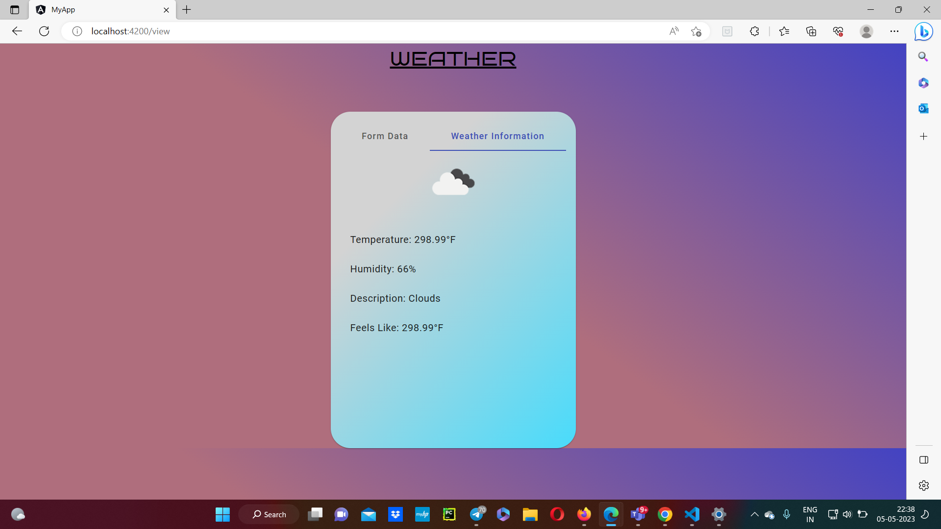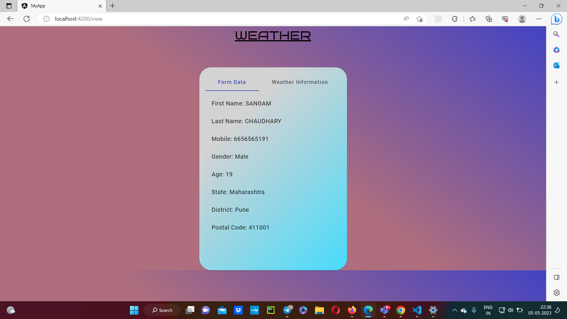 Click on the weather option -> Form will pop-up ->fill fata and click save -> Weather and Form Data will be show