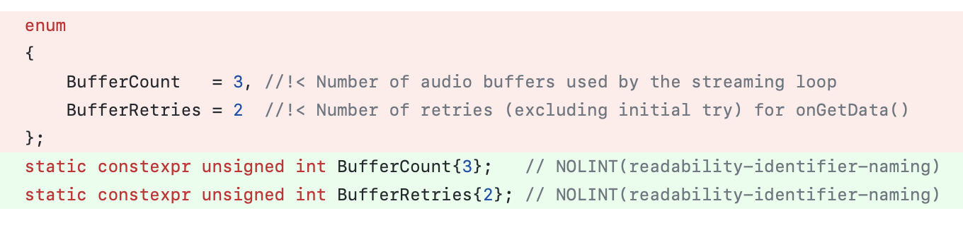 Addressed review comments Addressed review comments Changed NOLINTBEGIN/END to NOLINTNEXTLINE Addressed CI complaint Fixed BSD CI issues