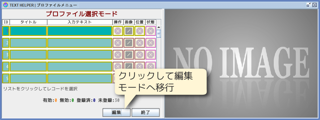 選択モードから、[編集]ボタンをクリックして、編集モードへ移行します。