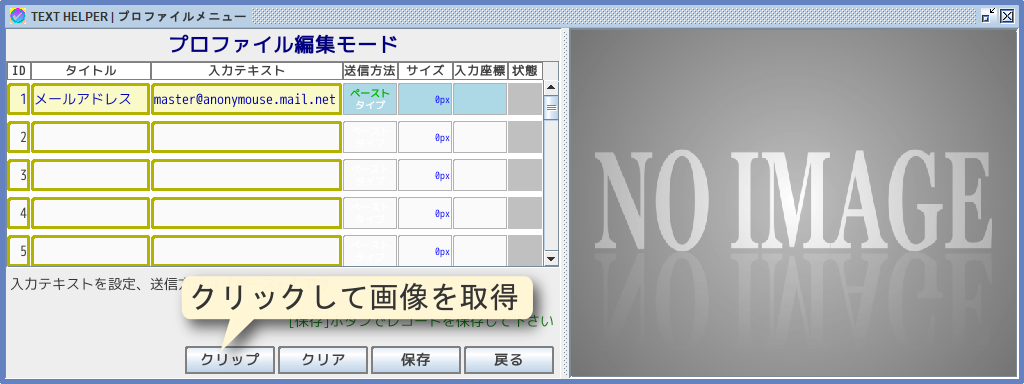 まずレコード2のタイトルと入力テキストを登録し、図5-2の状態で画像クリップツールを起動します。