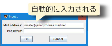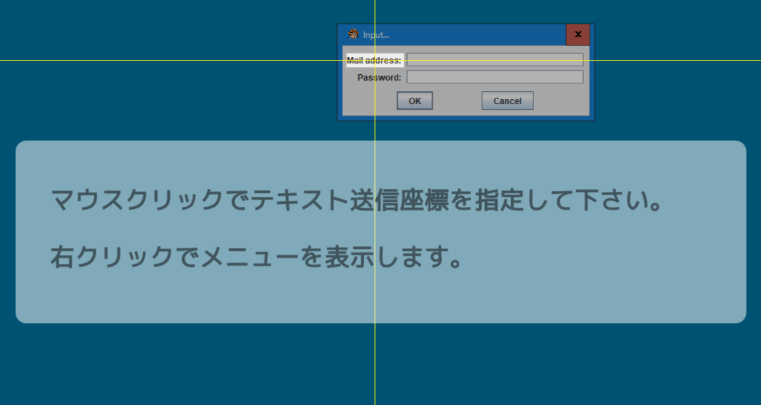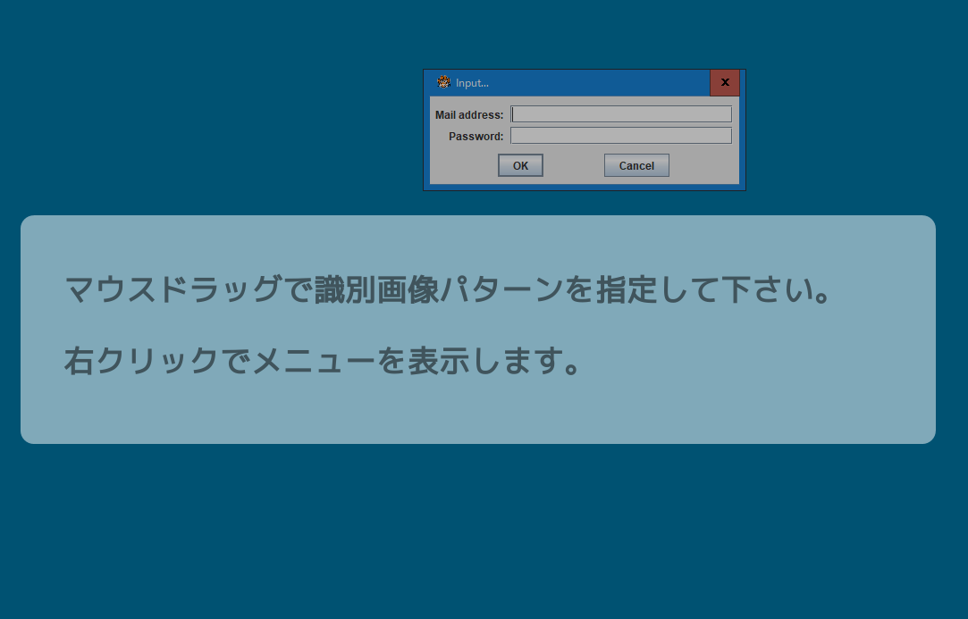 下図のようにメールアドレスとパスワードを入力してログインする、一般的なダイアログに対して、事前に登録したテキストを自動的入力するための設定作業を解説いたします。