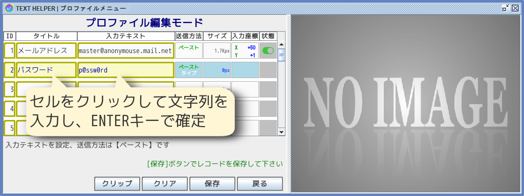 このツールでは複数のパターンがマッチした場合は、マッチしたパターンの面積(ピクセル数の合計)が一番大きいものを採用する仕様となっています。 このケースではレコード2が採用され、パスワードが自動入力されます。