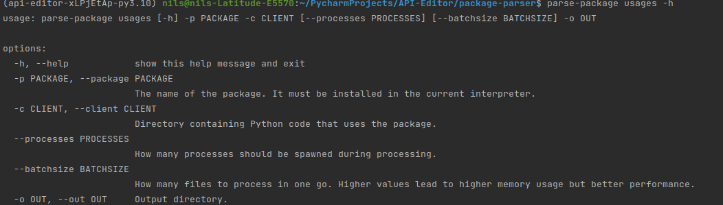 Wenn man jedoch im Terminal parse-package usages -h aufruft wird diese Flag nicht aufgelistet, sodass unklar ist wofür sie genutzt wird.