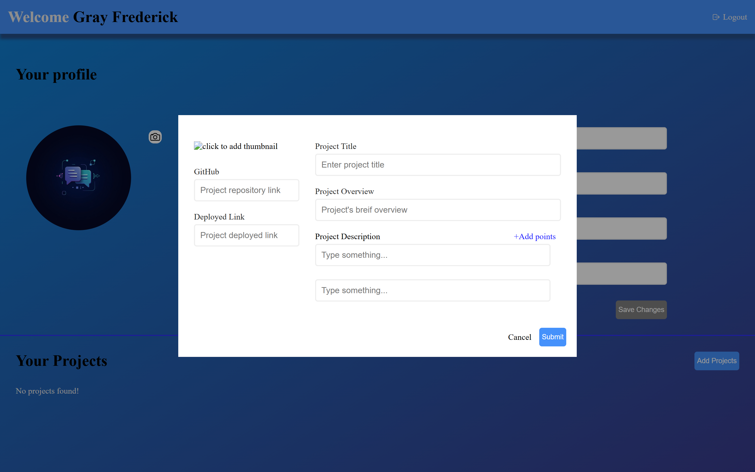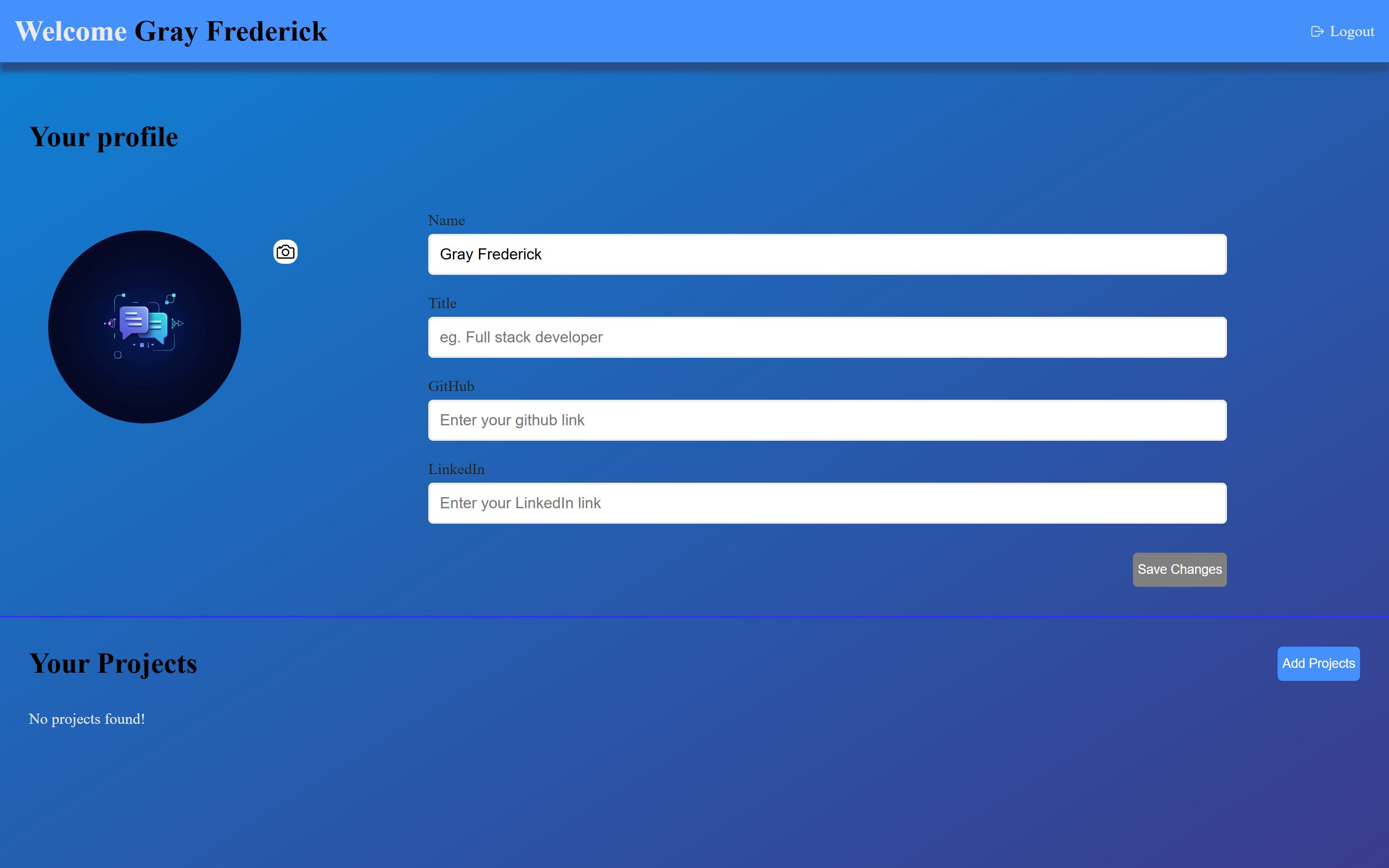 - 📚 Project Management – Add, edit, and delete projects with descriptions, GitHub links, and deployed URLs.