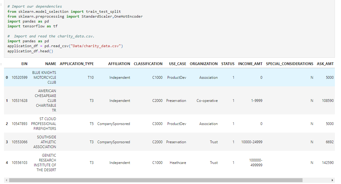 The data provided was a CSV file that contained organization data. A preview of the CSV file is below and can be found in the "Data" folder of this repo.
