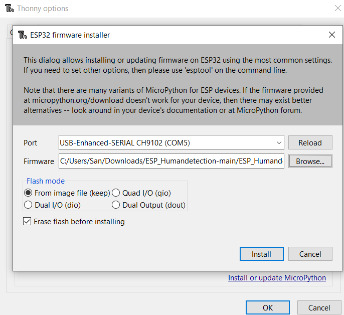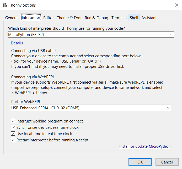 Next click on 'Install or update Micropython' on the bottom right of the window.