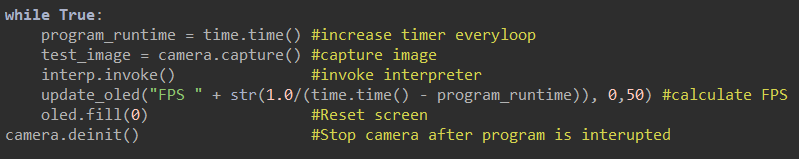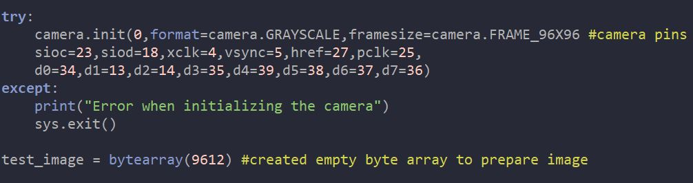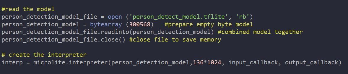 This sections primarily opens and prepares the Tensorflow-Lite model to be used in the program. The bytearray in line 58 depends on the size of the model.