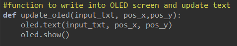 To write and update the SSD1306 OLED screen, a function with three input parameters was used.