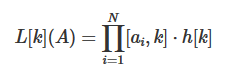 $$L[k](A) = \prod_{i=1}^N[a_i,k]\cdot h[k]$$