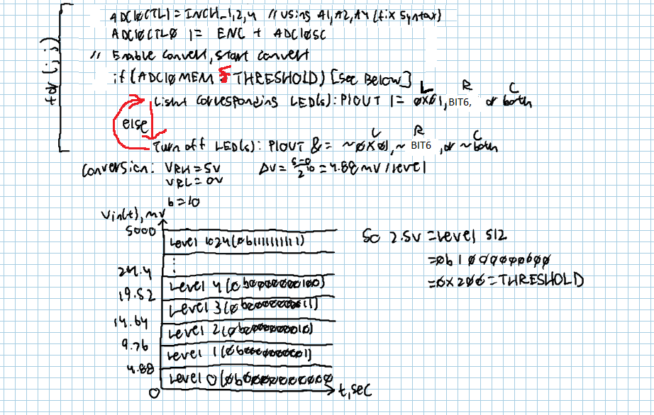 I used the class notes as a template for coding the ADC10 on the MSP430.