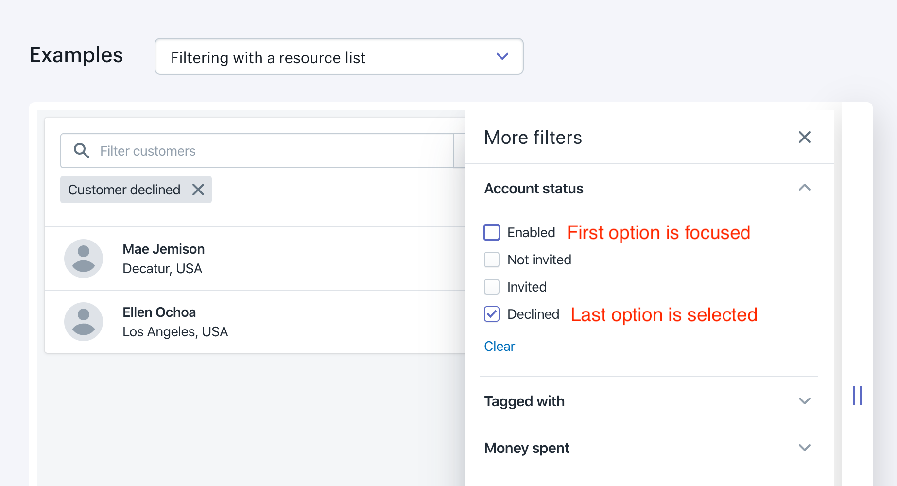 When using a ChoiceList filter within the Filters component, selecting an option does not focus the right option.