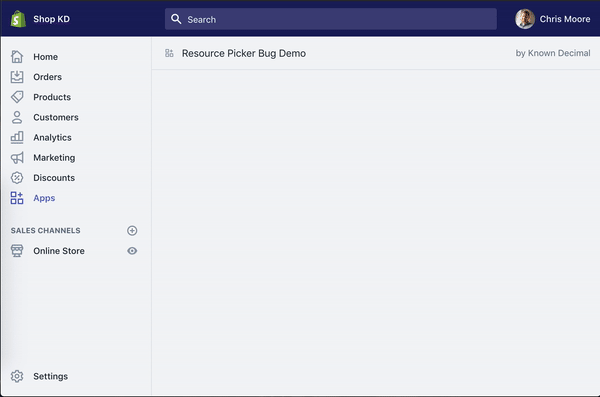 When developing an app that adds line items to a draft order, I noticed that my ResourcePicker kept resetting my line items to the initial state. Since this component requires being inside of an embedded app and I am working on a private project, I put together an example app that demonstrates the issue: https://github.com/katzenbar/shopify-resource-picker-bug