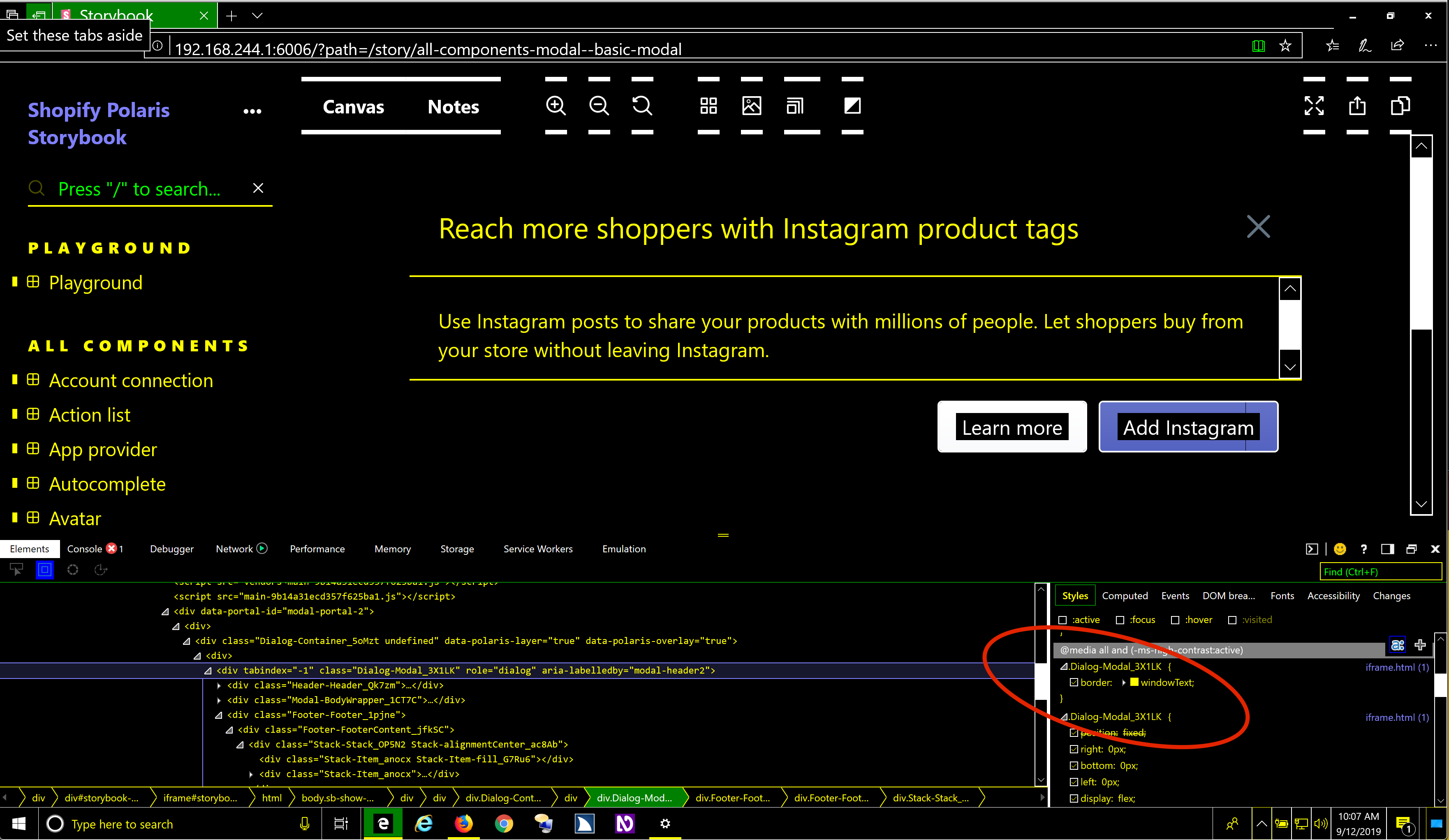 @LauraAubin The color is showing up correctly in dev tools now, but it's not displaying because there's no width set! Should just need a I think the closest example is the one that's in the Progress bar, where the border and the color is being set. Let me know if that helps! |