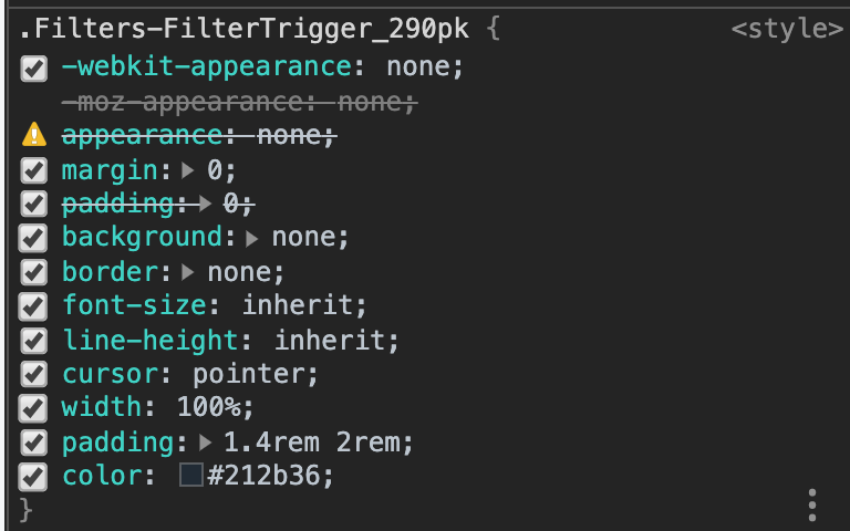 the browser will warn that there are duplicate properties and I'm not sure if that's following best practices for this project. i.e in the screenshot belowpadding
