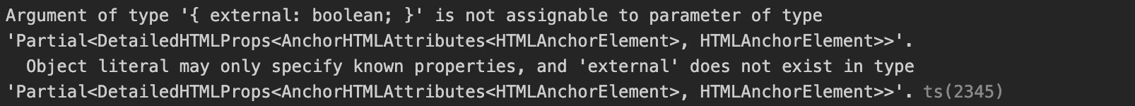 Hi! Yes, I wasn't sure about this one, for that reason I opened but I didn't add anyone yet until I solve it now that I came back from vacation. My doubt is because external is only used in the UnstyledLink that appears when external is passed. If it is not passed, it renders a button (For that reason, I was asserting by checking the button. I was thinking to add an not.renders around the UnstyledLink with undefined external). If I insert this as a prop, VSCode says that external doesn't exist in button and for that reason I cannot do the assertion.