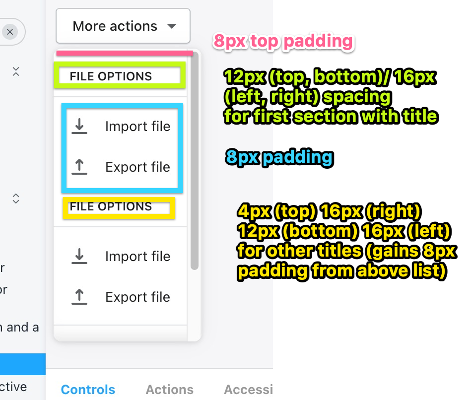 Code below displaying a bunch of different combinations between sections/items/section titles
