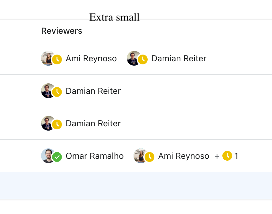 This looks good just a couple of questions. Can you also add an example for extra small in the avatar readme?
