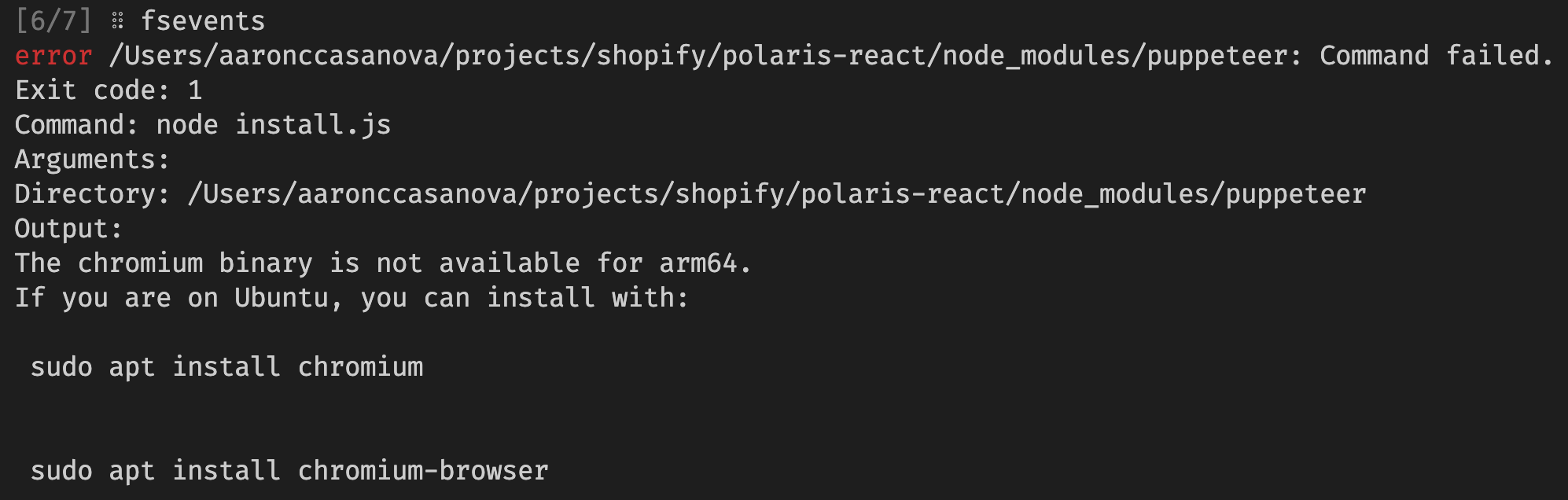 Seems updating puppeteer to a newer version should help. The dependency comes in from @shopify/storybook-a11y-test which was updated to use puppeteer@^10.4.0 several months ago in Shopify/quilt#2045.