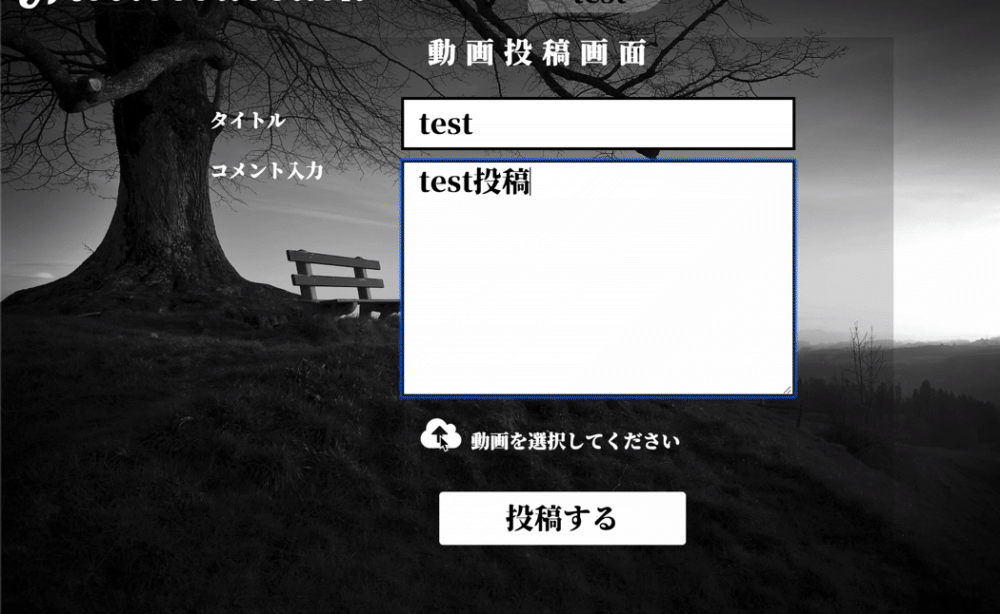 タイトルとその動画に対しての投稿者コメント、アイコンを押し動画の選択が出来、投稿ボタンで動画の投稿をする事ができる。