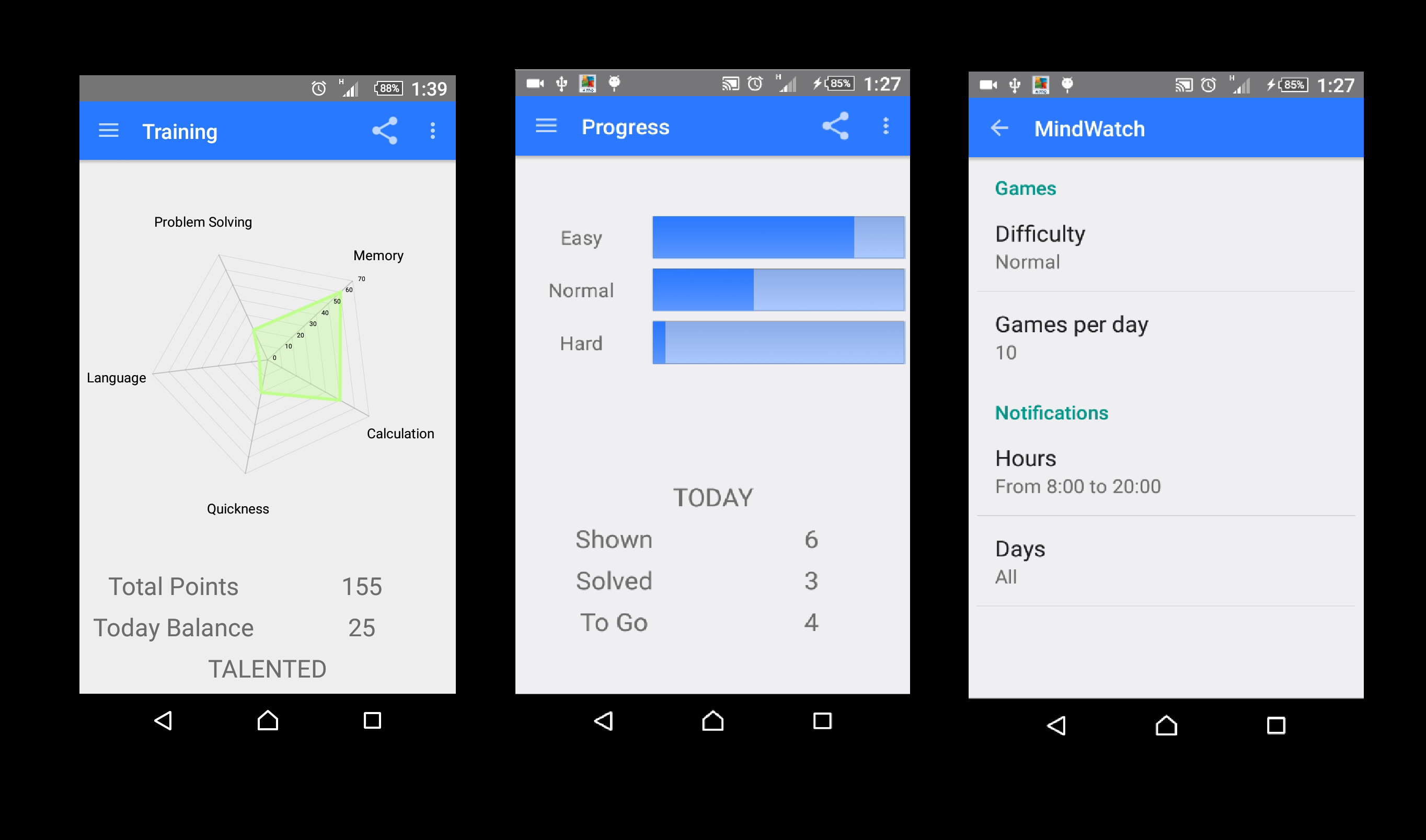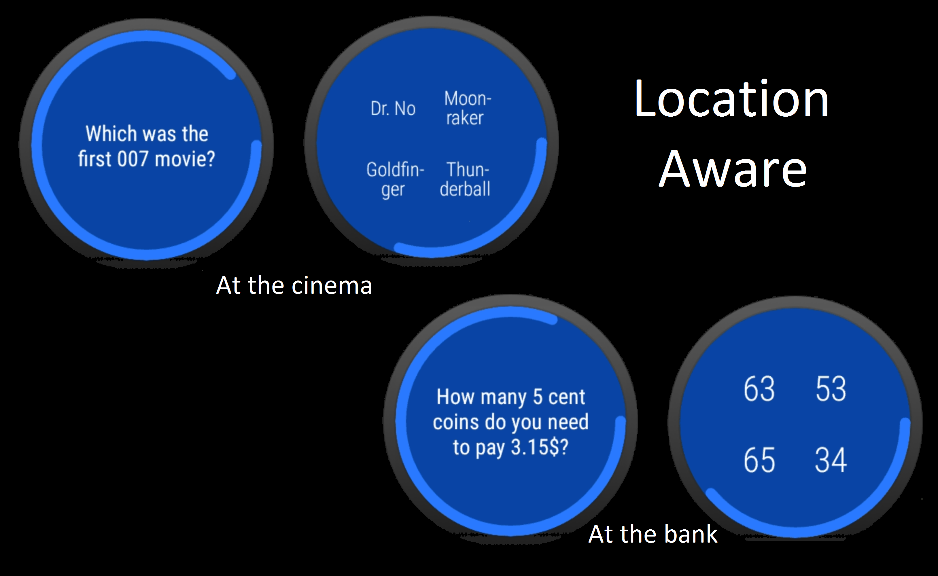 MindWatch is a smartwatch application for brain training. The idea is to submit to the user logic, math, general-knowledge or memory questions/games at random moments of the day directly on the wearable device. The proposed games are very easy to understand and quick to solve, in accordance to the wearable device usage paradigm. The application also exploits the user current position to show location-related games, for example asking to compute the interests on a given sum if the user is at a bank.