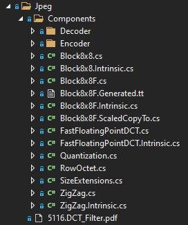 They're T4 templates generating partials of the named types. If you expand them you see the generated file. e.g. Block8x8F.Generated.cs