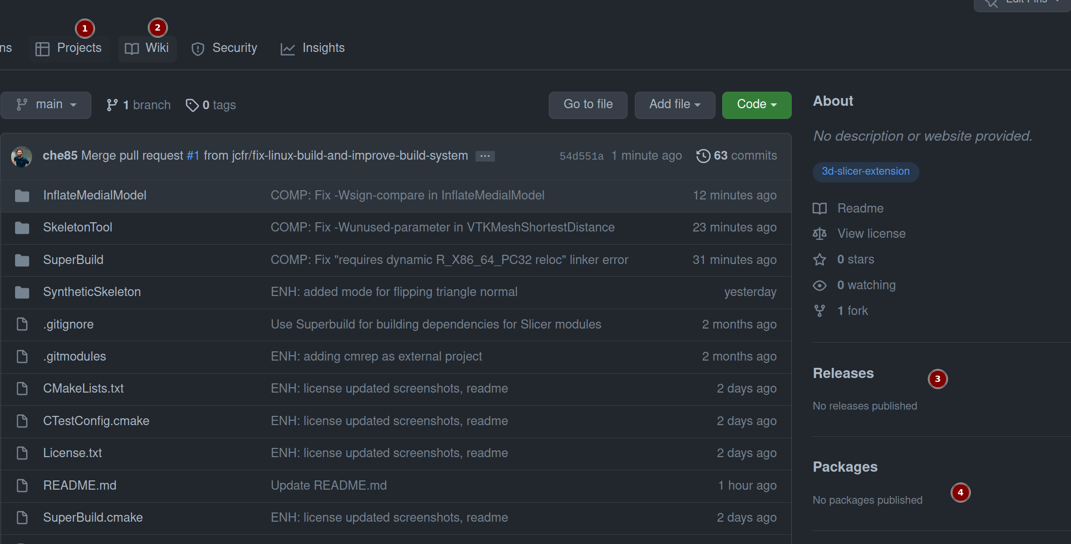 I've made Project & wiki tabs, Packages and Releases hidden. I'll now rename the repository to SlicerMedialSkeleton (keeping the extension name MedialSkeleton) and update the s4ext file accordingly. |