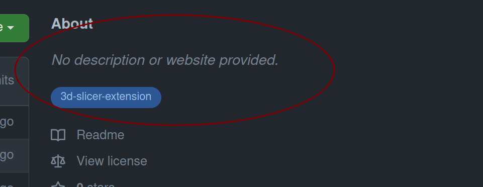 3d-slicer-extensionGitHub topic so that it is listed here. To edit topics, click the settings icon in the right side of "About" section header and enter3d-slicer-extensionin "Topics" and click "Save changes". To learn more about topics, read https://help.github.com/en/articles/about-topics[If you have any questions or comments then please describe them here.]
