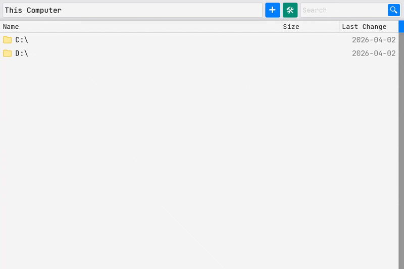 A simple cross-platform file explorer with searching, sorting, file creation and renaming.